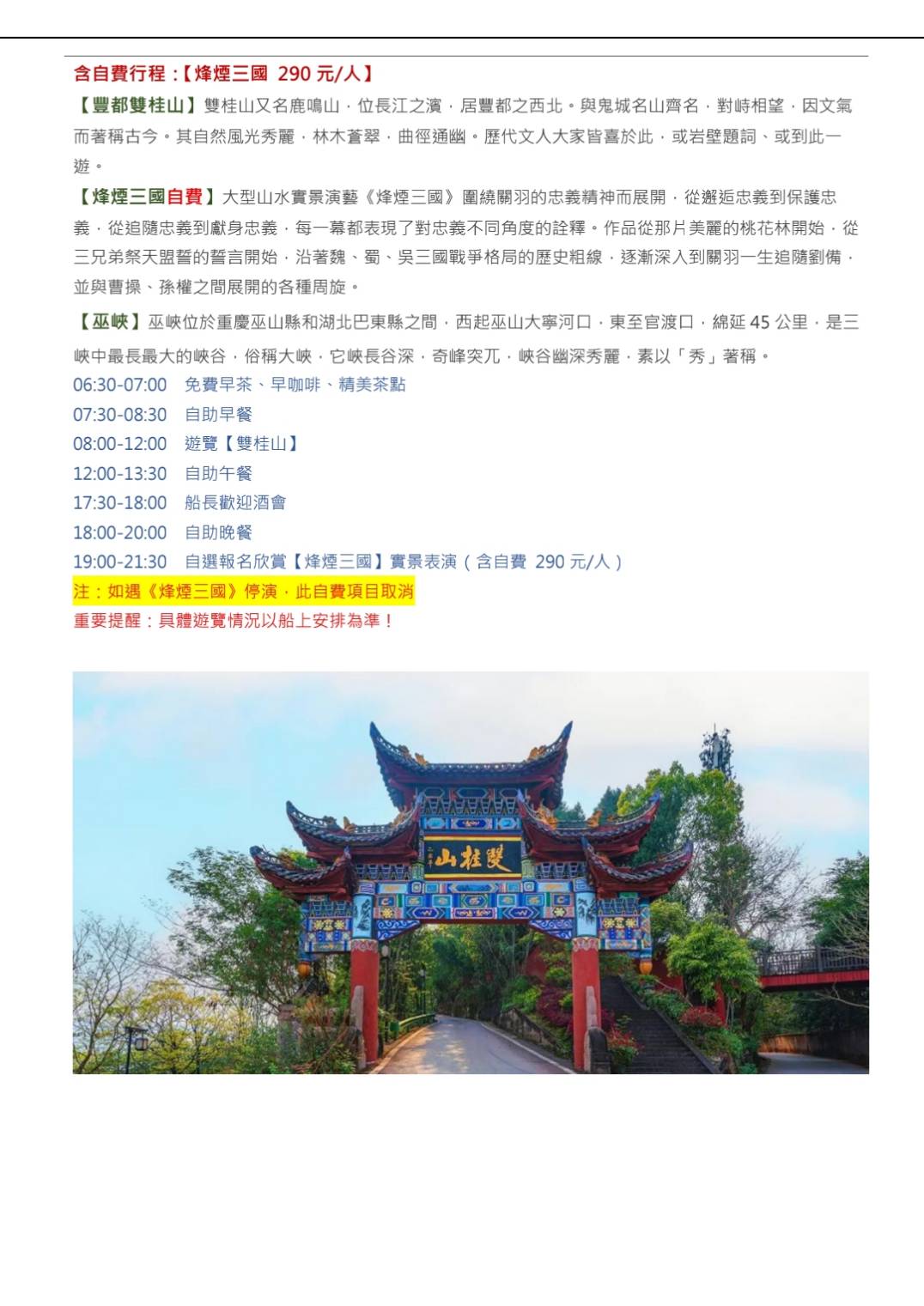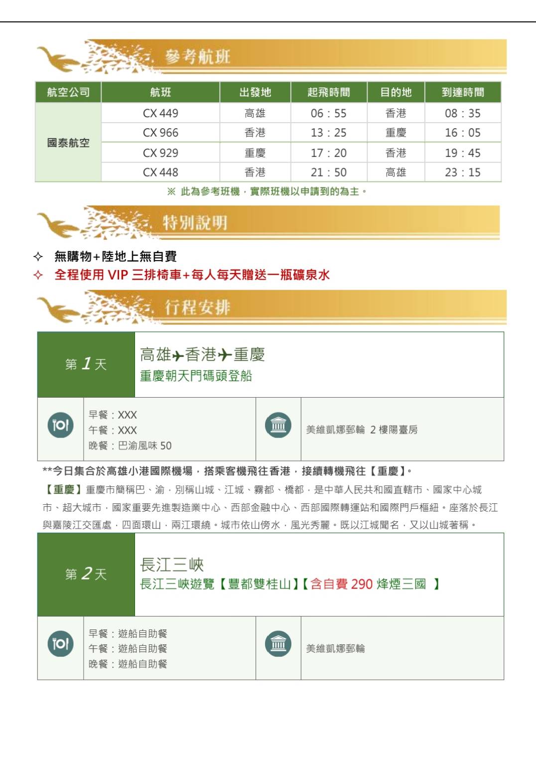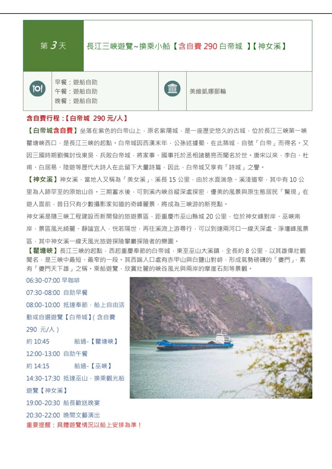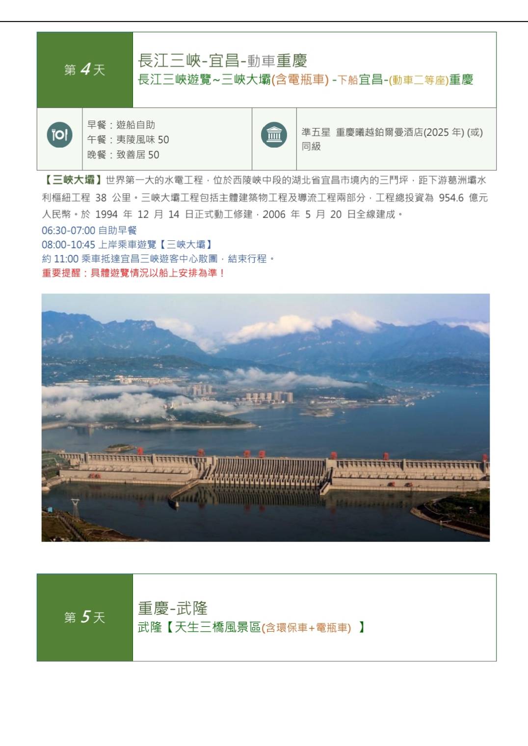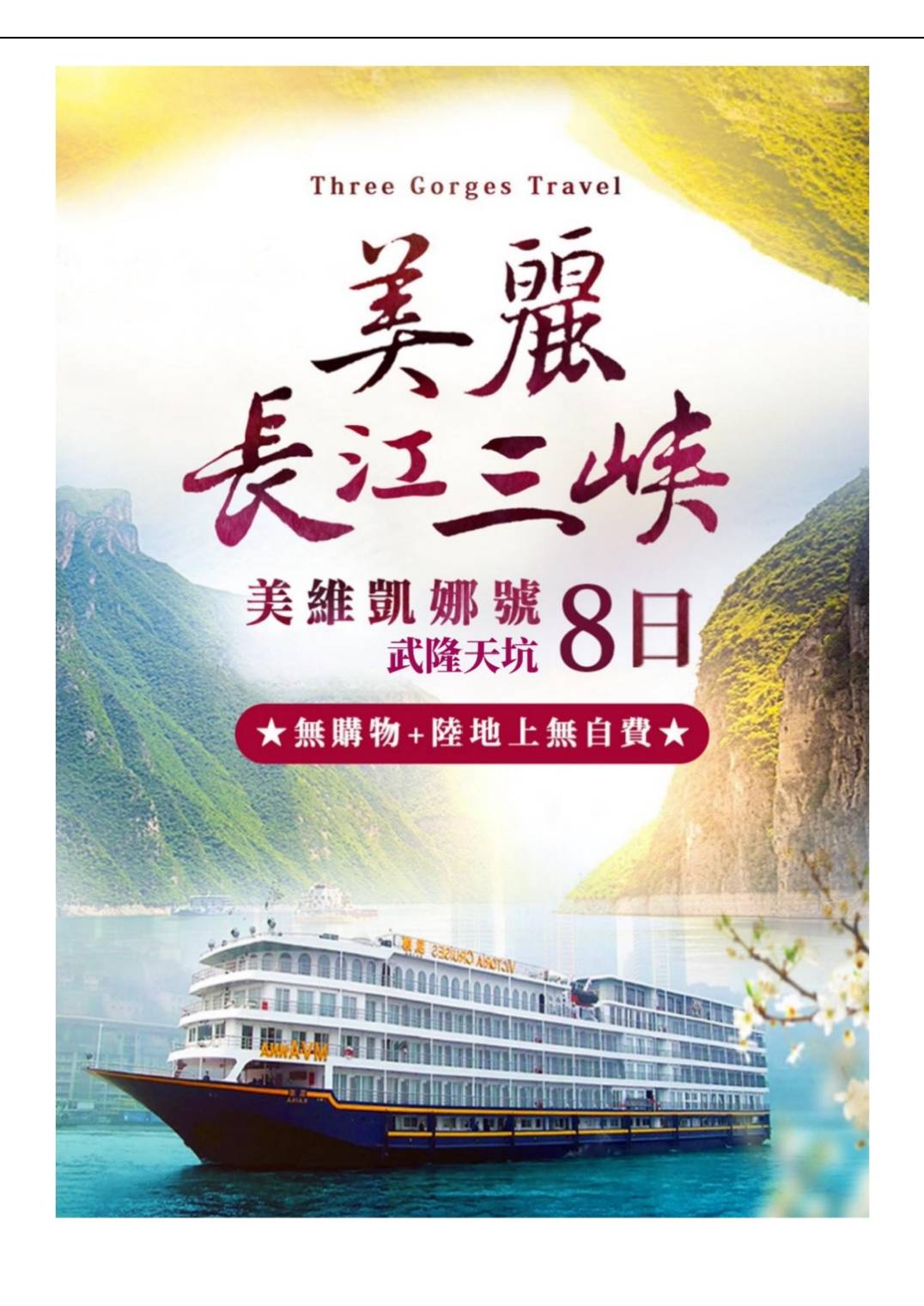 參訪長江三峽(美維凱娜號)武隆天坑8天下水 無購物陸地上無自費