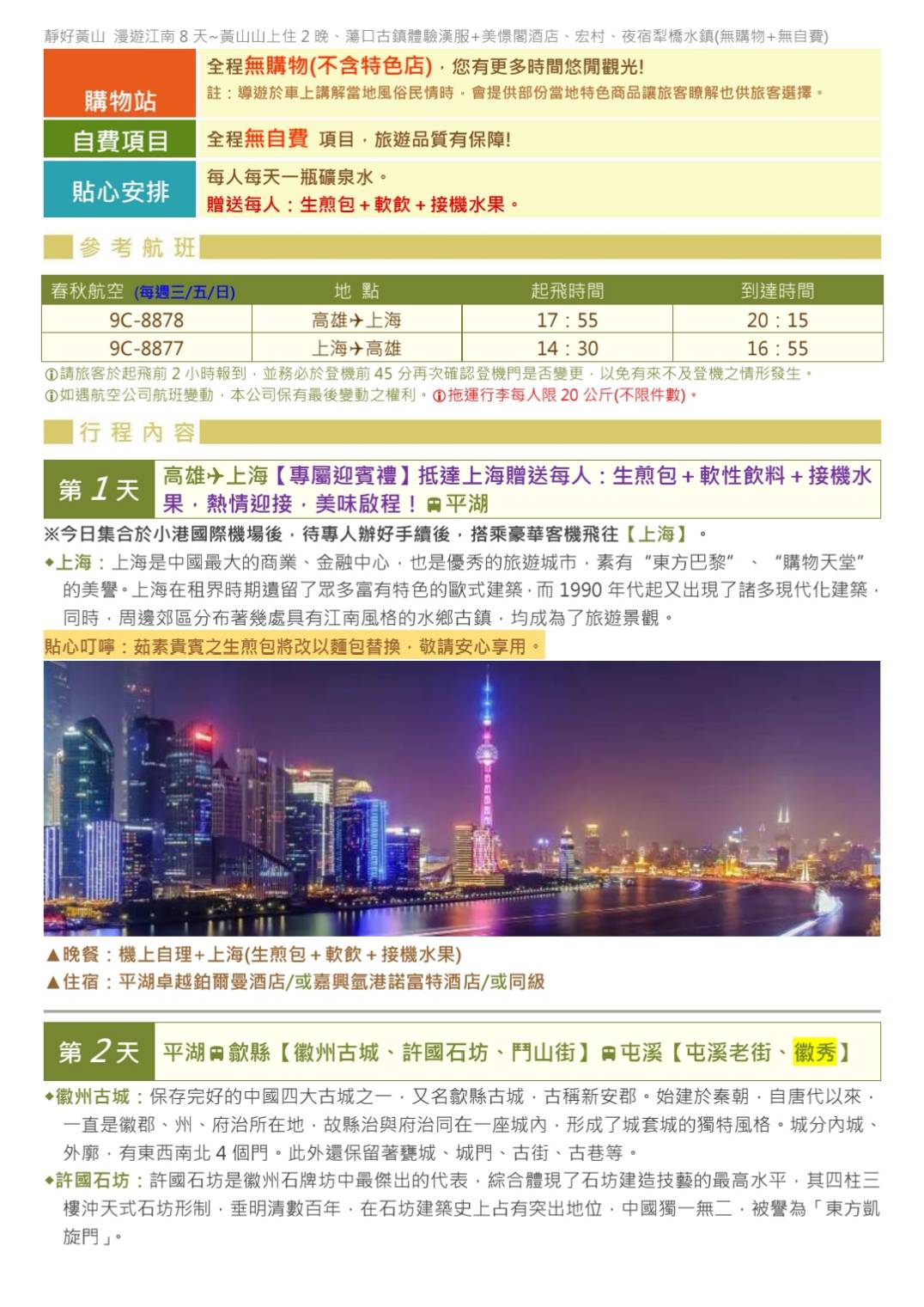 參訪9C上海靜好黃山二晚.漫遊江南 8天 蕩口古鎮 (更多出發日)
