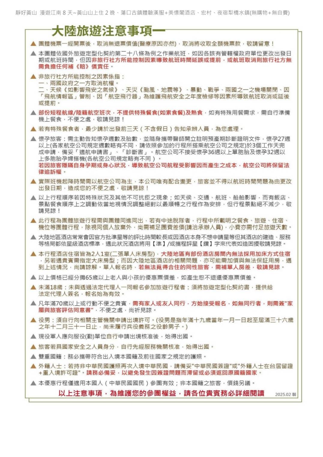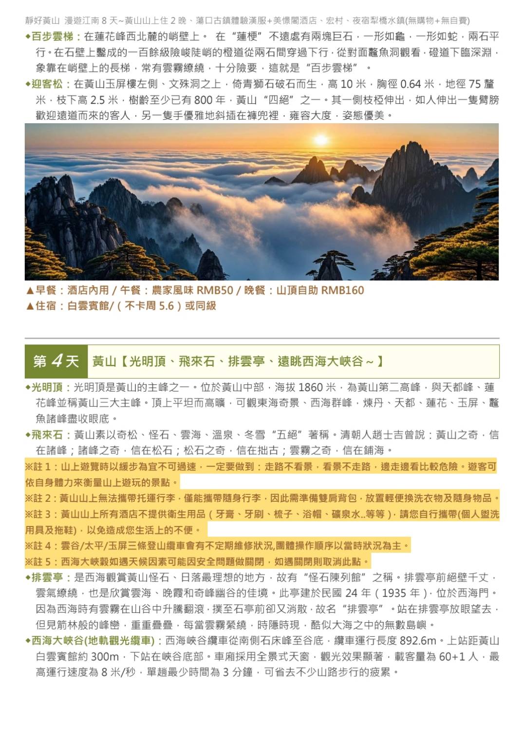 行程如遇觀光景點休假及住宿飯店地點調整或遇不可抗拒之現象(天候不佳),本公司保有變更行程之權利。
