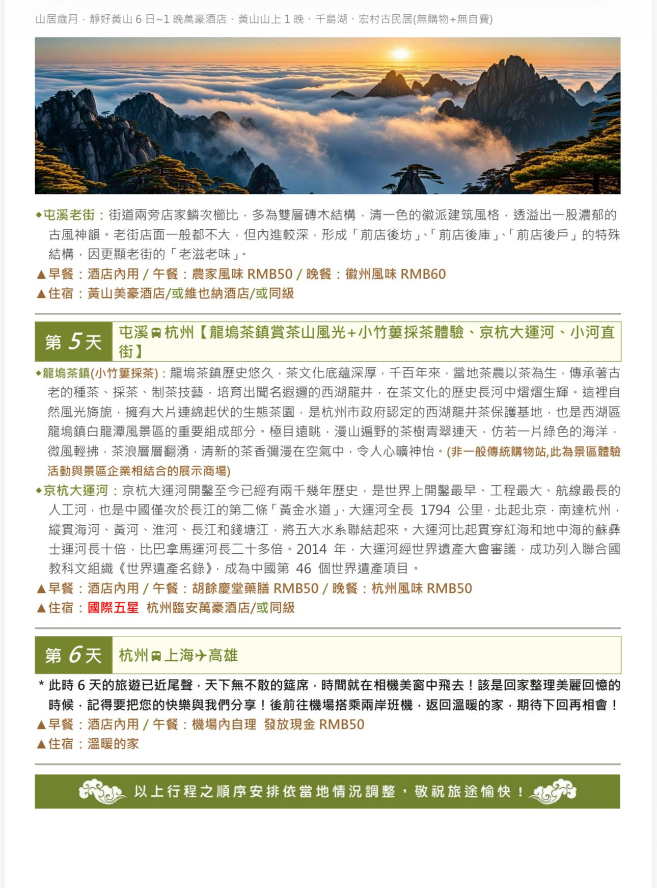 3. 行程如遇觀光景點休假及住宿飯店地點調整或遇不可抗拒之現象(天候不佳),本公司保有變更行程之權利。