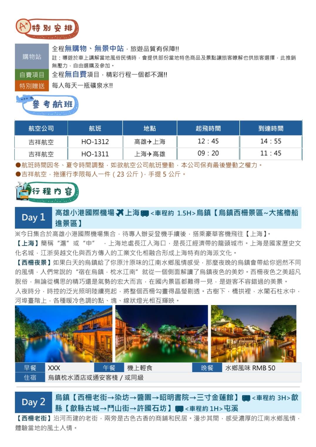 參訪HO上海~黃山山上2晚8日婺女洲打鐵花、望仙谷、烏鎮西柵