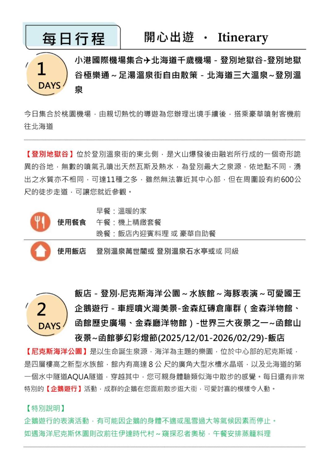 行程班機時間及降落城市與住宿飯店之確認以說明會為主。