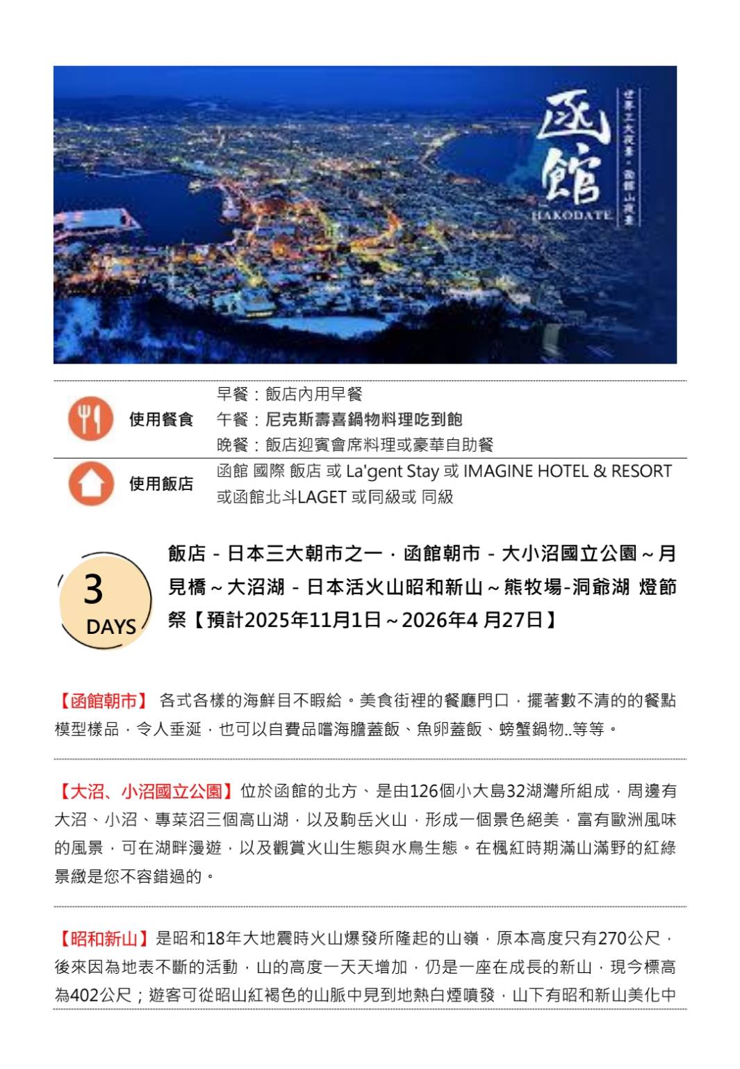 北海道尼克斯.萌熊牧場.函館纜車小樽.洞爺湖溫泉、三大蟹6日