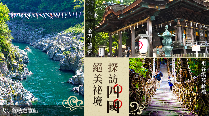 〈大步危峽〉遊覽船→米其林綠指南三星景點〈金刀比羅宮〉→免稅店→高松丸龜町商店街