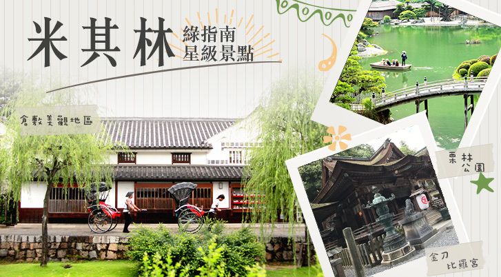 ★米其林綠指南三星景點〈栗林公園〉→白壁宅邸與倉敷川沿岸柳樹〈倉敷美觀地區〉→三井OUTLET倉敷→岡山空港