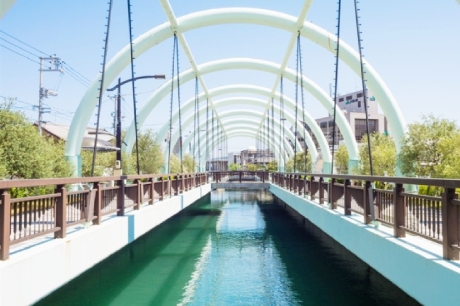 兩岸屋宇房舍以黑瓦屋頂、白色牆壁為主,還留存著江戶時期的建築風格,故有白壁之町的美稱。