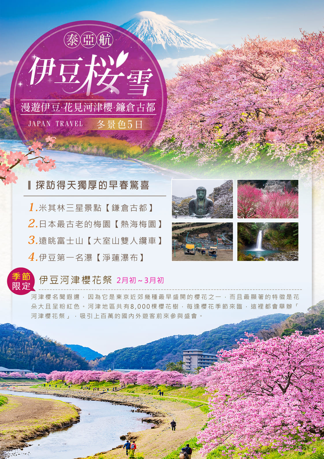 熱海梅園於1886年開園,面積為44000平方米,有730多棵,64個品種的梅花。還有360多棵楓樹,130多棵松樹以及其他樹木。熱海梅園作為觀賞“日本一早梅”的名勝,一直以來都非常有人氣,每年11月開始,各種不同的梅花相繼盛開。