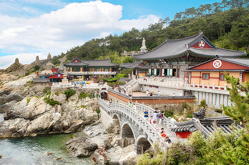 由高麗恭愍王的王師懶翁大師創建於1376年,原名普門寺,是韓國三大觀音聖地之一。因結合海、龍與觀音大佛,使這裡比其他地方有著更深層的信仰意義。傳說只要在海東龍宮寺真心誠意地祈禱,菩薩將會於夢中顯靈並實現一個願望。