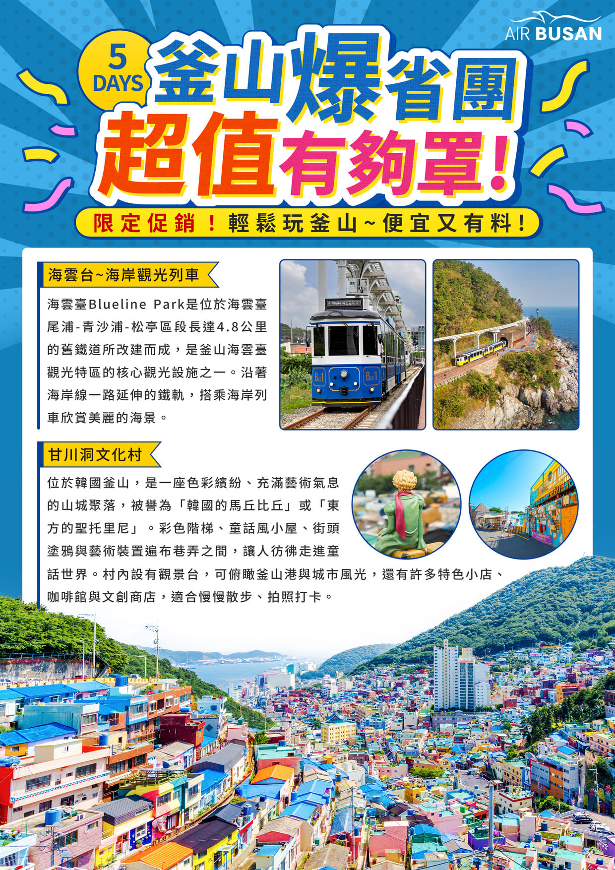 Park)」紅遍網絡,遊客可以乘坐彩色復古車廂,將海雲台無邊際海岸線盡收眼簾。列車從車站開出的畫面更似足日本鎌倉高校前電車打卡位,難怪會成為火爆韓國的打卡聖地!海雲台海岸觀光列車「藍線公園列車(Blue