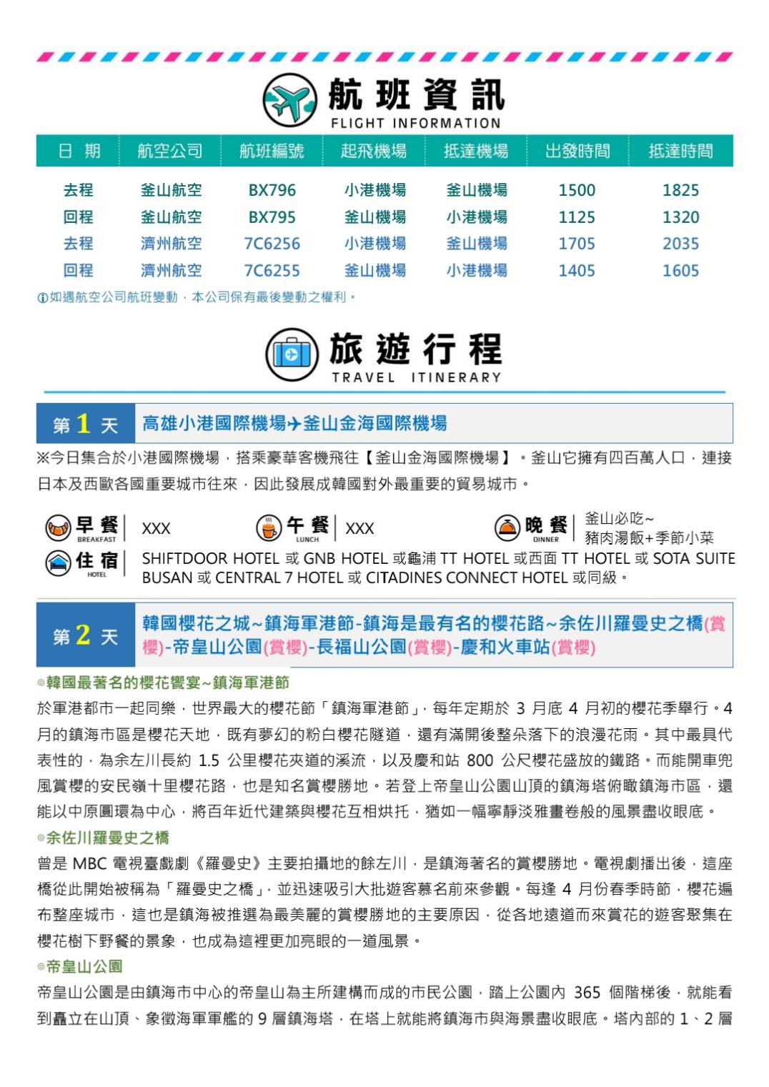 櫻映釜山5日鎮海軍港🌸櫻花節 美食饗宴 一站彩妝