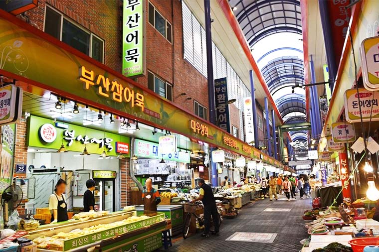 【國際市場(光復洞時裝街)】韓戰結束後,這裡曾是難民避難和生活湖口的《生存戰場》。他們經營從釜山港進來的進口日用品來養家糊口,此市場便也因而得名;現在這裡銷售的商品包括時裝、皮革製品、電子產品、玩具等。比一般便宜20~30%,因此頗受國內外遊人歡迎。