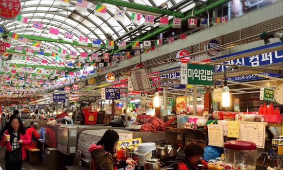 裡滿滿都是在地美味的韓國小吃,其中綠豆煎餅、麻藥紫菜飯捲、生章魚、牛肉拌飯、大麥拌飯都很受歡迎,是不同於明洞、弘大等觀光景點區的小吃滋味。
