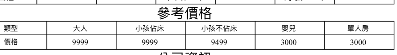 若為一位大人 或 一位大人帶一位嬰兒報名參加,或需求單人入住一間房,需加收單房差。