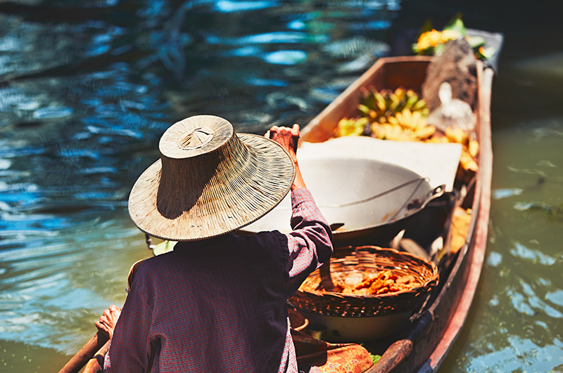 ◆四方水上市場:結合農村文化藝術元素,融合鄉村文化木雕風格的複合式水上市場,佔地36800平方公尺。有別於傳統丹能莎朵歐式水上市場的長途拉車距離及其物價都以外國人價位喊價,四方水上市場對觀光客而言不但更具特色,所售物品的價格也都是以泰國人當地的售價,非常便宜!對於喜愛泰國特色紀念品及小吃的遊客,這裡可是必遊之地唷!各種泰式水上建築在迂迴的河道上,悠遊穿梭在水上五金商貨水果雜項商家,期間或有民俗傳統舞蹈笙歌,木雕藝術敲打聲,好棒的巧思,把泰國傳統文化展現的是如此多嬌。