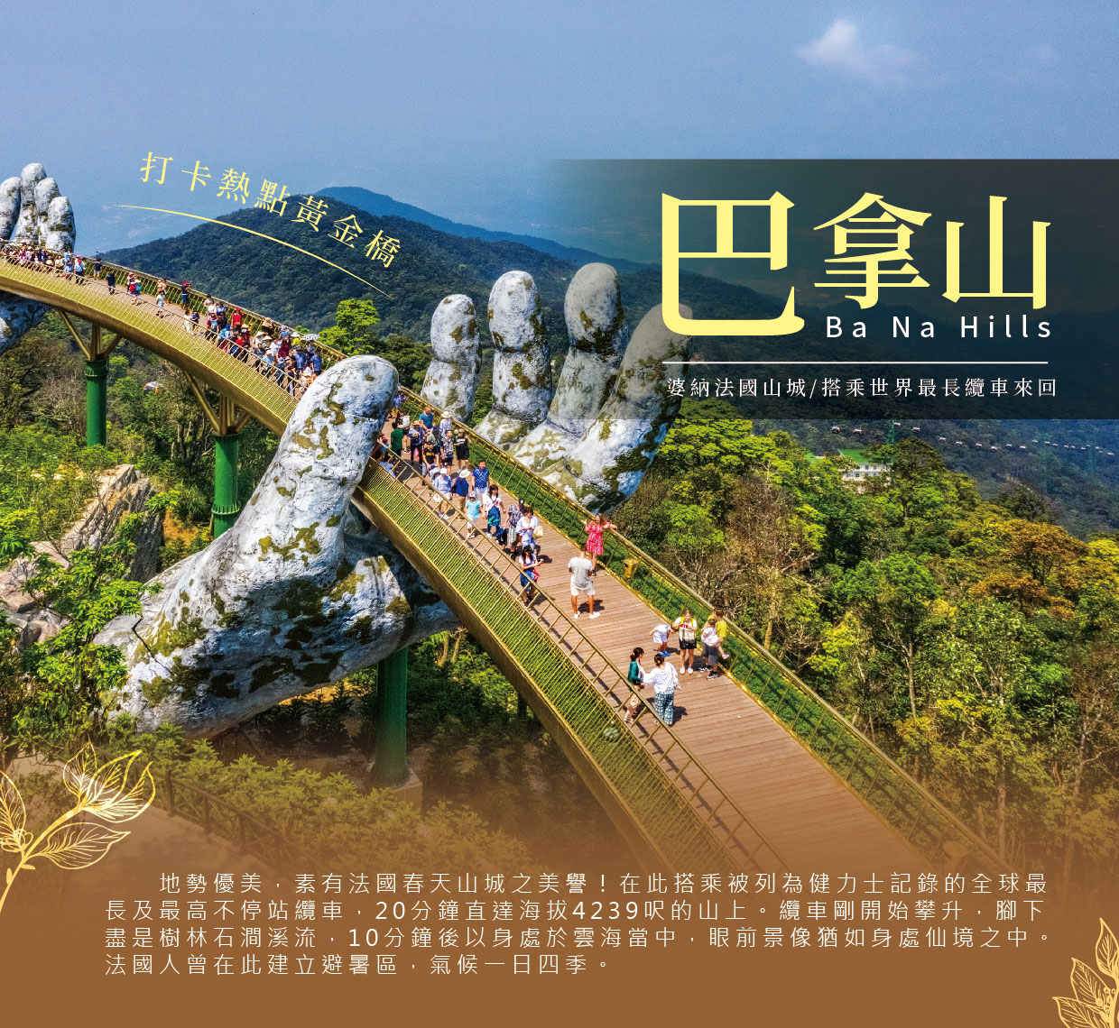 迦南島位於會安對岸,於會安碼頭搭乘船隻約30分鐘之船程,會安秋盆河一條發源於寮國與越南邊境地帶橫穿越南的河流,河邊水鄉景色美不勝收。迦南島是原始的自然生態風光,岸上密布著水椰林、檳榔樹,島上居民大多以捕魚及木雕維生。就讓我們體驗搭乘傳統竹桶船,穿越原始自然生態風光,及體驗樂釣螃蟹趣。
