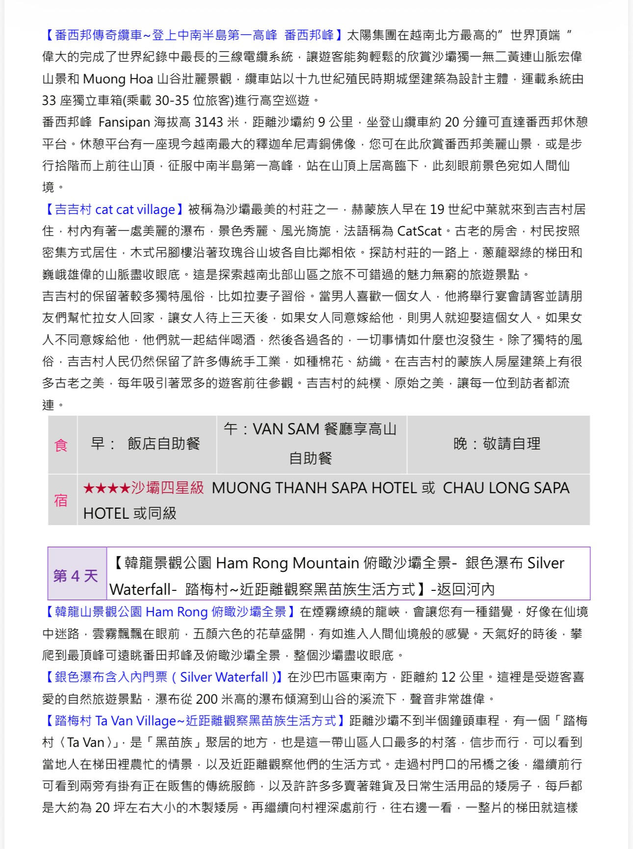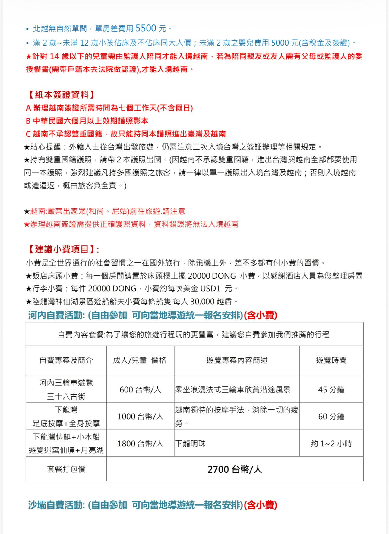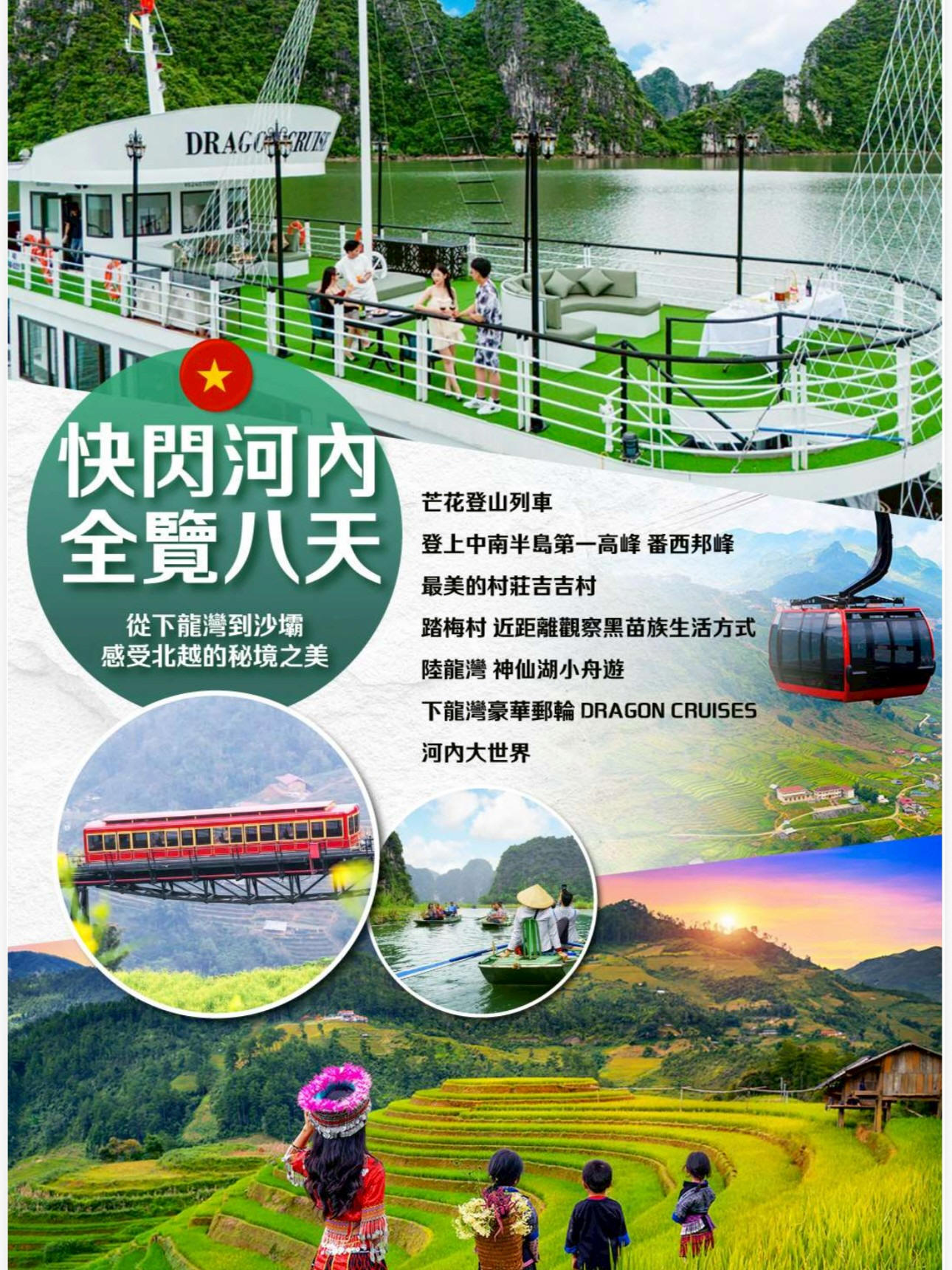 快閃河內北越沙壩全覽8天 高雄出發 含小費