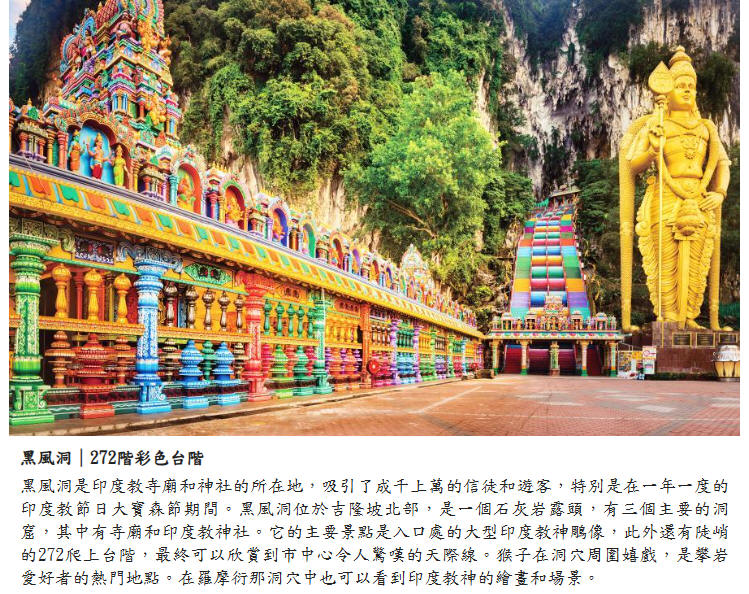 【雲頂高原】:有《南洋蒙地卡羅》之稱的唯一合法賭場。高海拔1700公尺,途中所見盡是蒼翠的原始森林,雲霧繚繞,蔚為奇觀,高原平均溫度介於15~25度之間。除可享受多元化休閒娛樂設施,也可親臨東南亞最大且合法的賭場試試手氣,或觀賞高原雲海景色,有如仙境般讓人暑氣全消!並安排搭乘空中纜車登上雲頂高原。擁有國際夜總會、迪斯可及卡拉OK等等,不妨自行前往遊覽探險一番,呼吸清涼空氣或可前往雲頂賭場消遺一下,試一試您的手氣,說不定有意想不到的收穫。