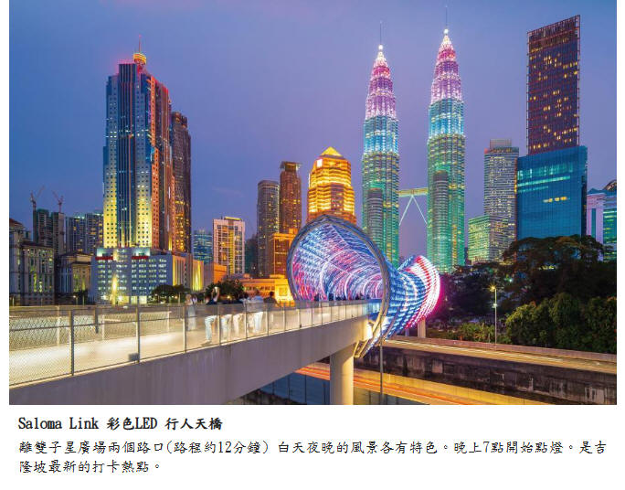 吉隆坡新地標(購物商場+最大空中花園) →雙子星花園廣場(國油雙峰塔 KLCC) →Saloma