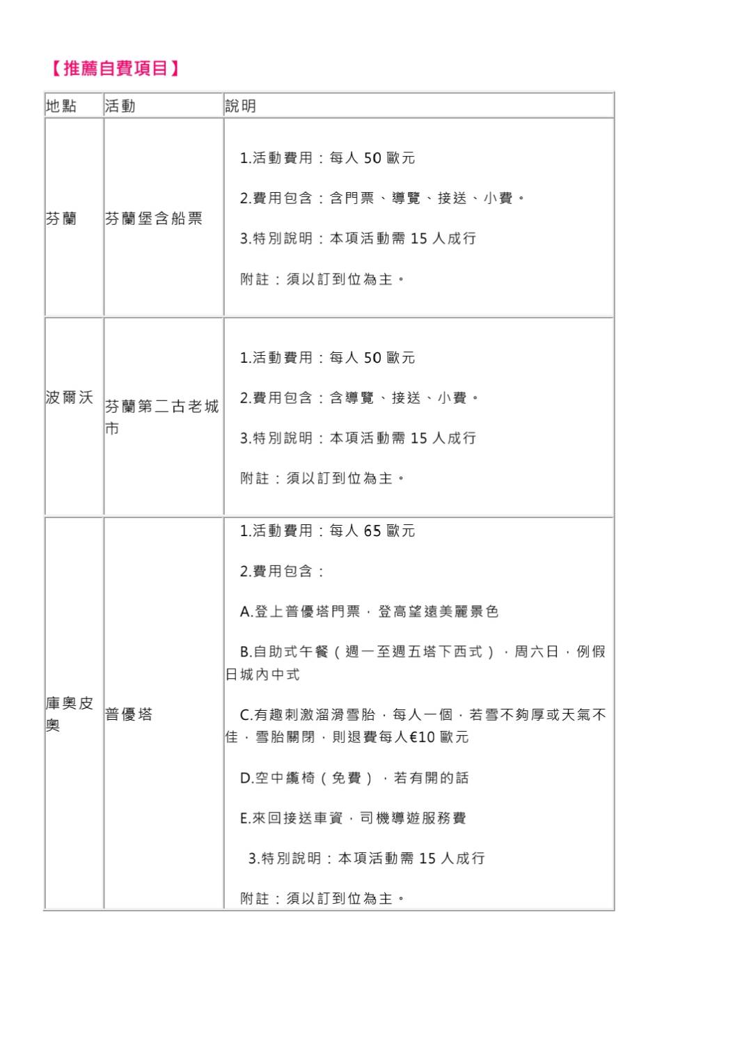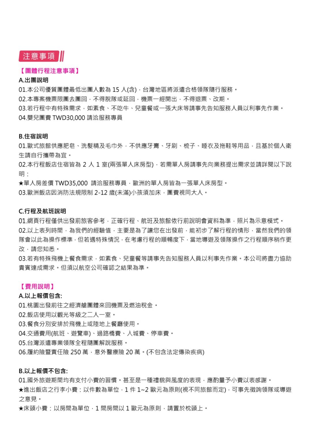 行程班機時間及降落城市與住宿飯店之確認以說明會為主。