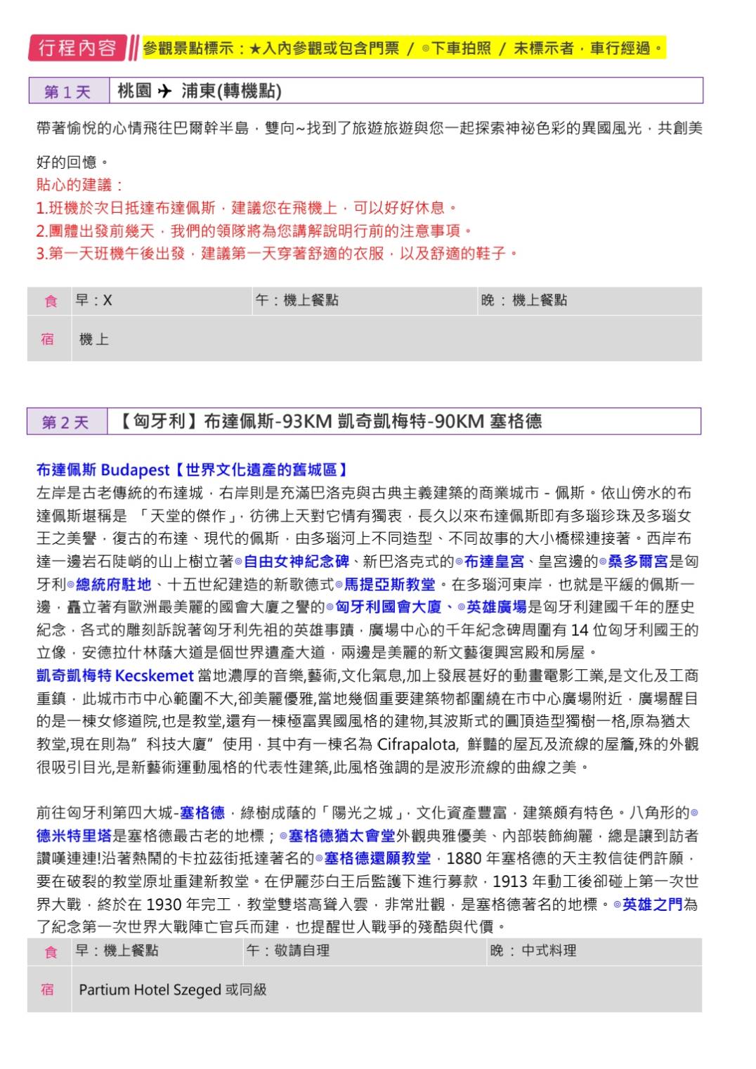 行程班機時間及降落城市與住宿飯店之確認以說明會為主。