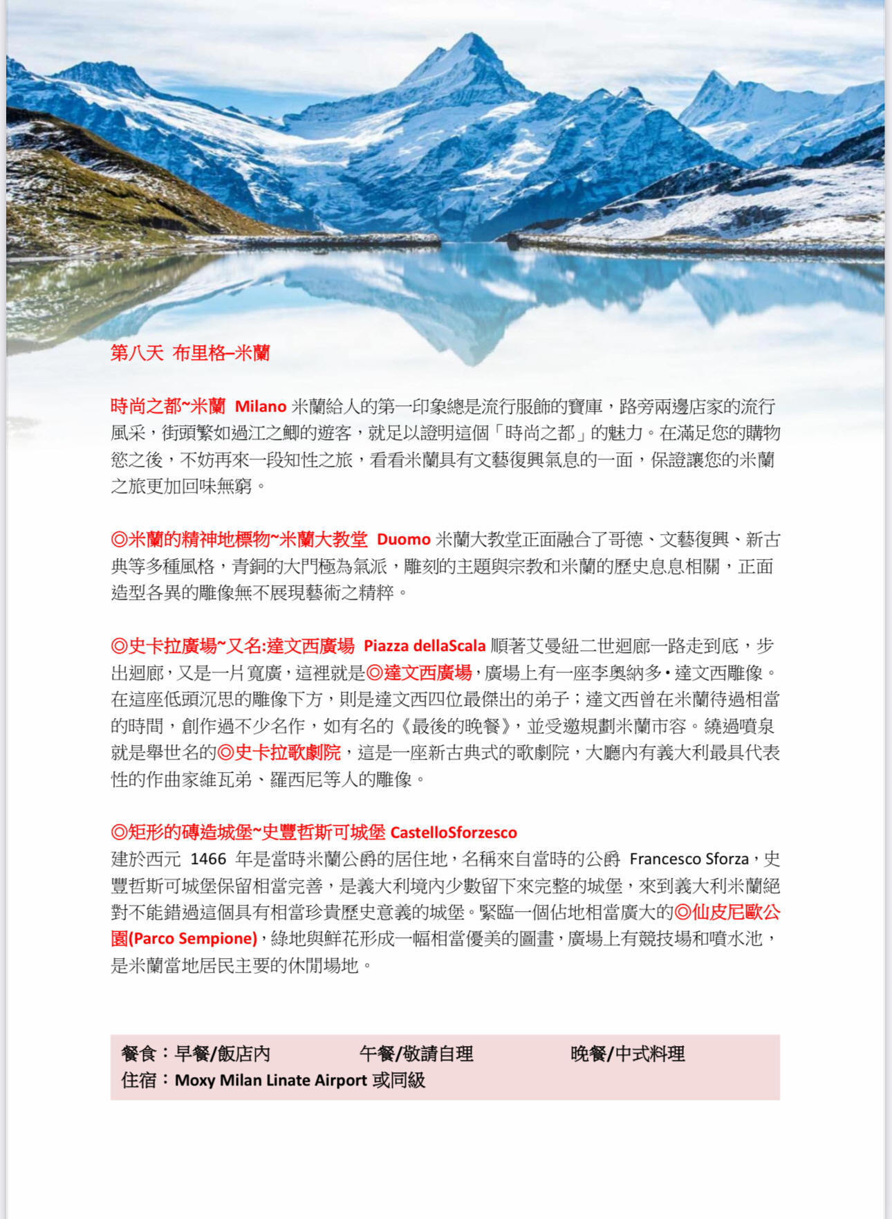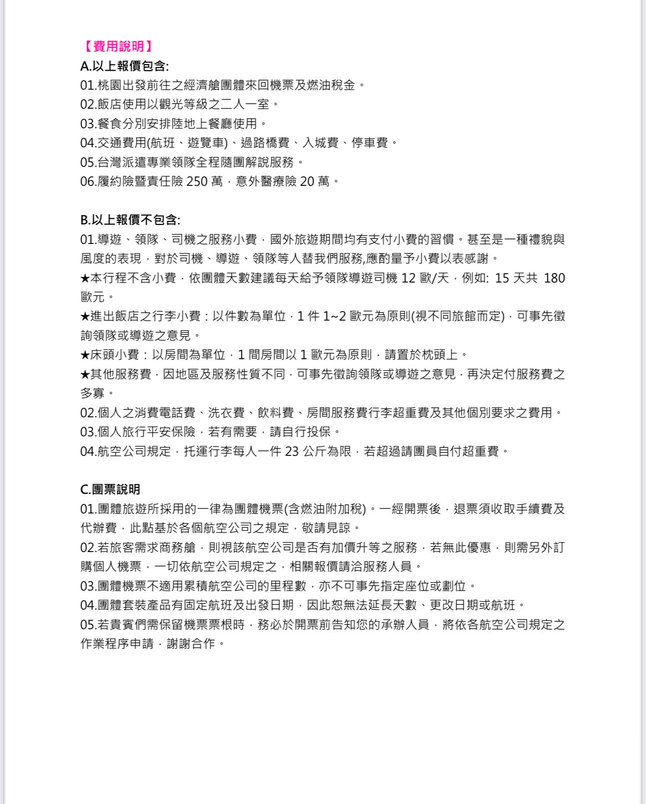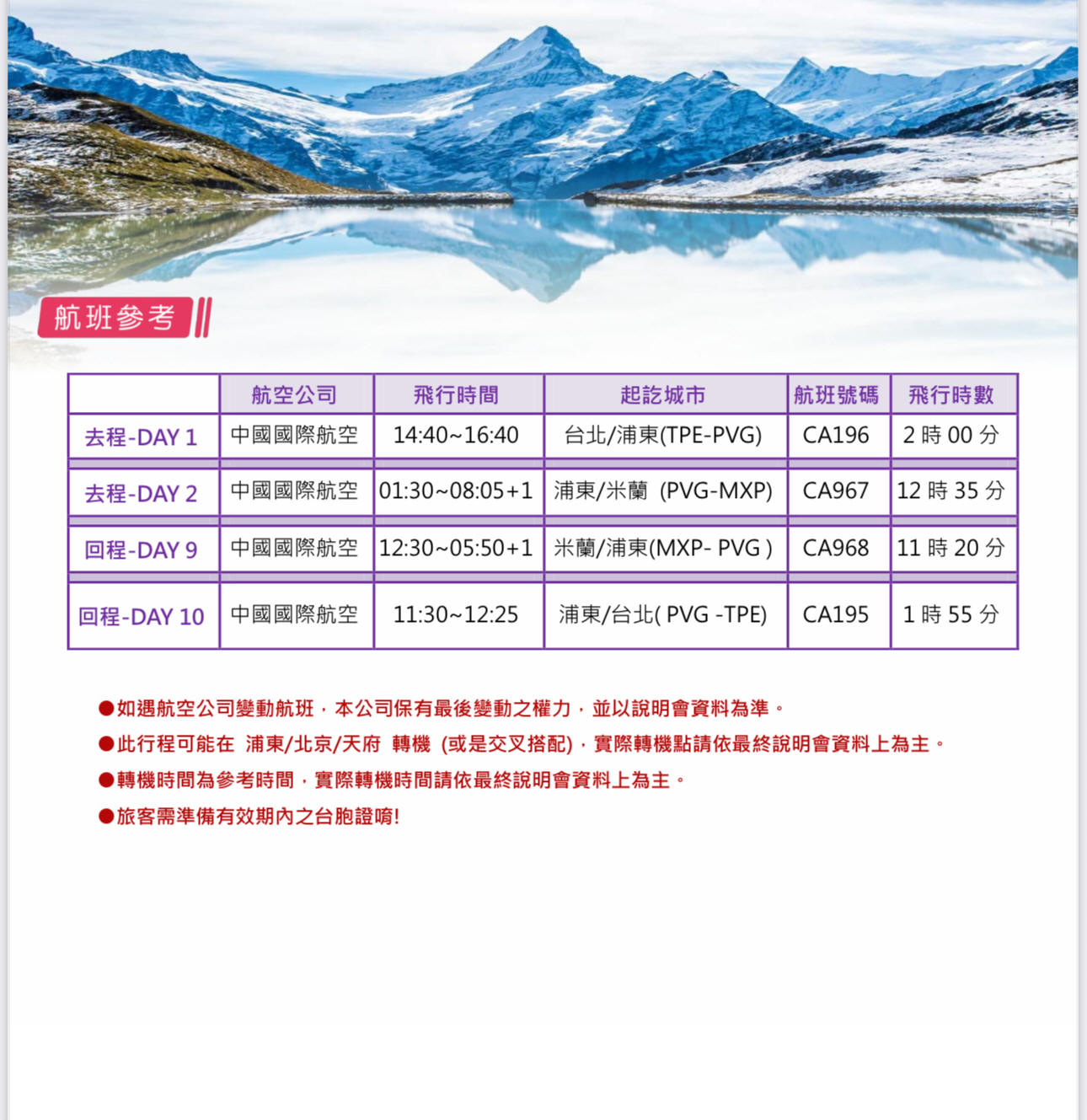 行程班機時間及降落城市與住宿飯店之確認以說明會為主。