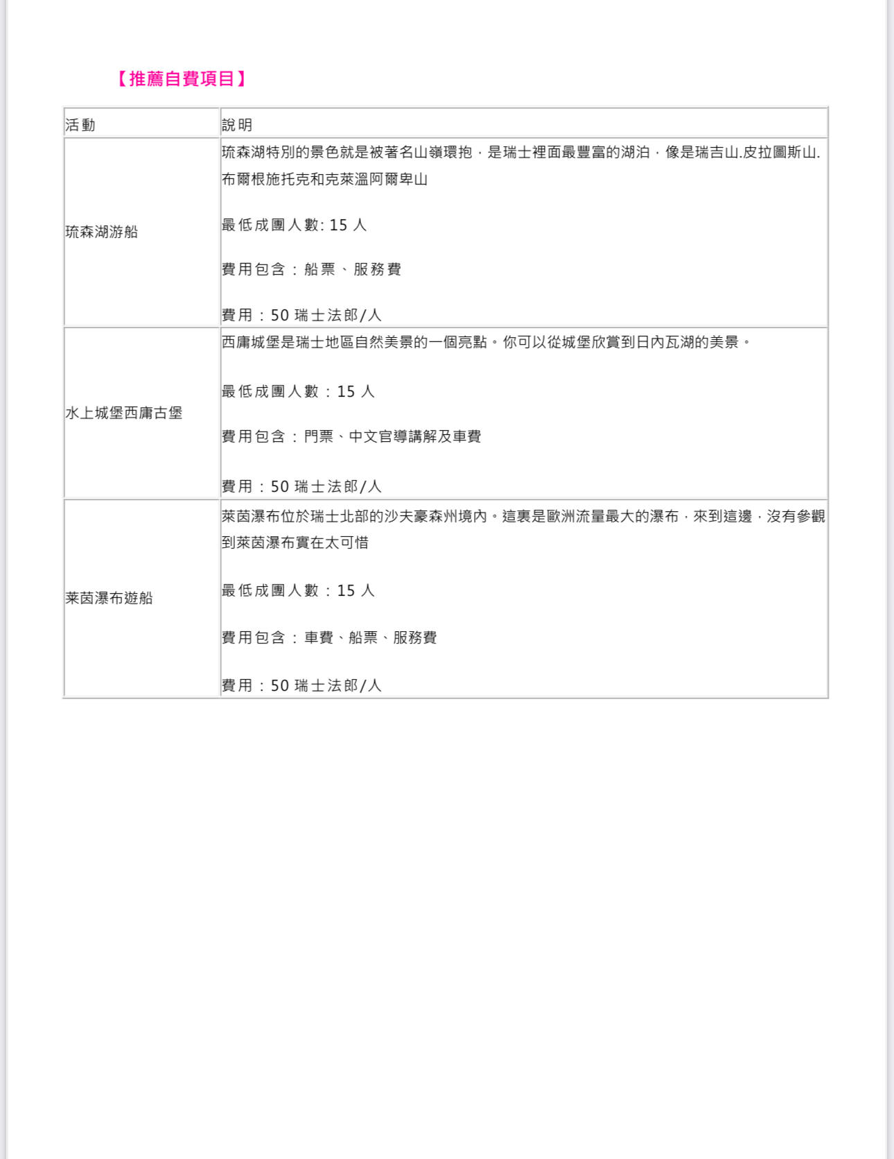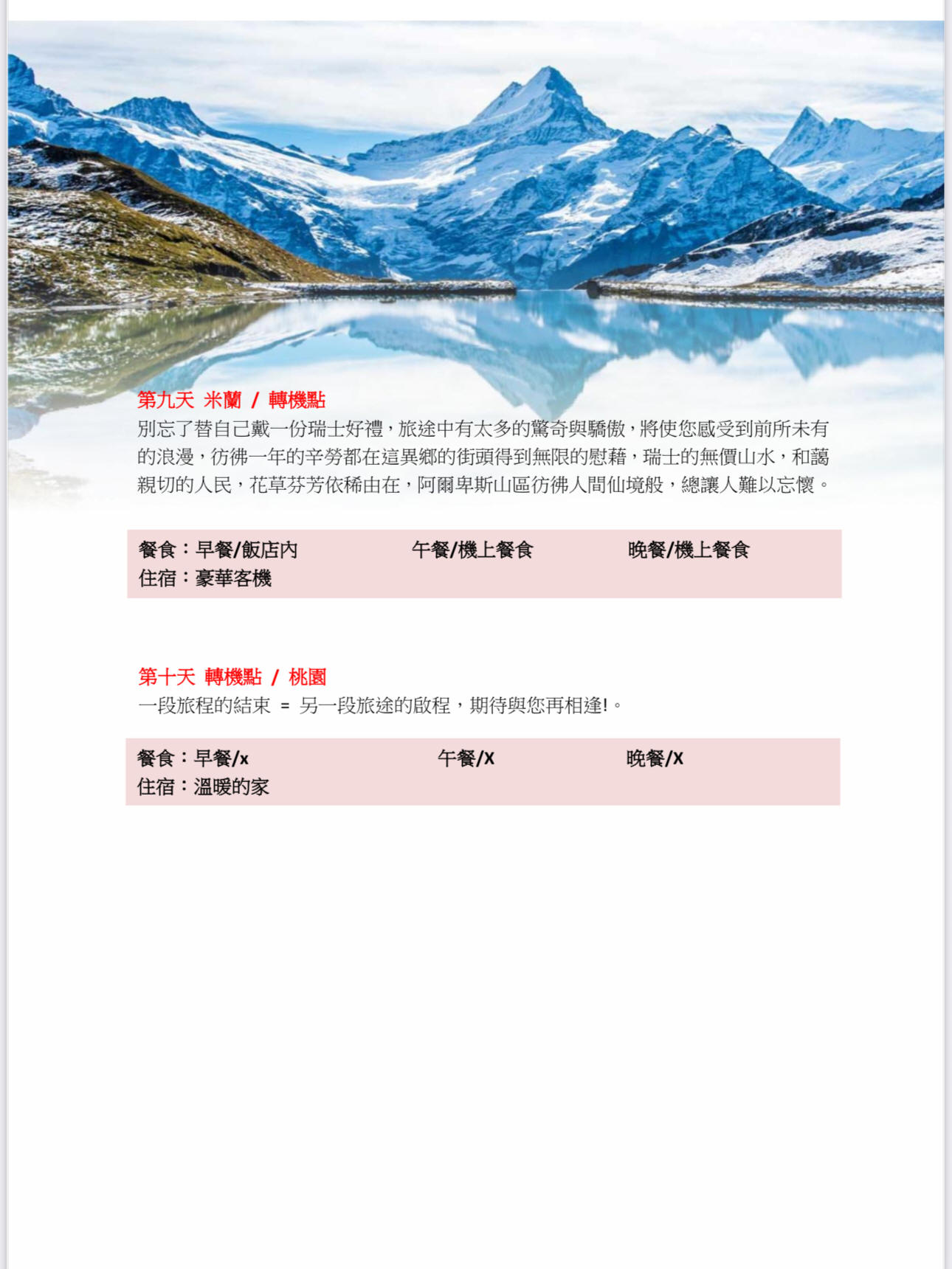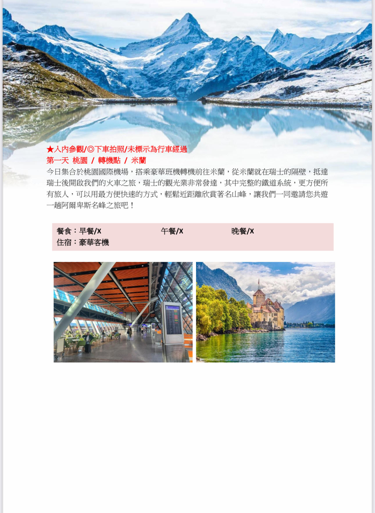 行程班機時間及降落城市與住宿飯店之確認以說明會為主。