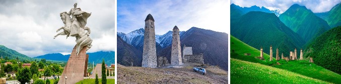 •印古什共和國:「印古什」這個名稱是源自一個古代聚落Ongusht,意為「印古什人居住之地。」首府馬加斯。 位於大高加索山脈的北部。由北至南綿延120公里,由西至東50公里。屬山地地形,高達1800米。