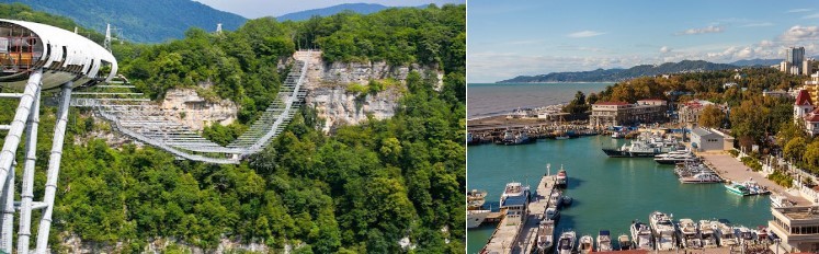 它距離索契市中心85公里,臨海40公里,四面環山,山腳有碧波蕩漾的湖泊。山城海拔高度600米,最高峰3000米,山頂終年積雪。