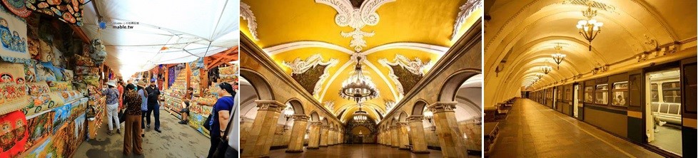 展開俄羅斯地下宮殿之旅】,莫斯科的地下鐵已有六十餘年的歷史,建設於史達林當政時期,有的車站深入地下近百公尺,工程十分浩大,美侖美奐的壁飾、吊燈令人嘆為觀止,每個車站各有其獨特的藝術風格及富麗堂皇的建築,為造訪莫斯科不可錯過的景點。